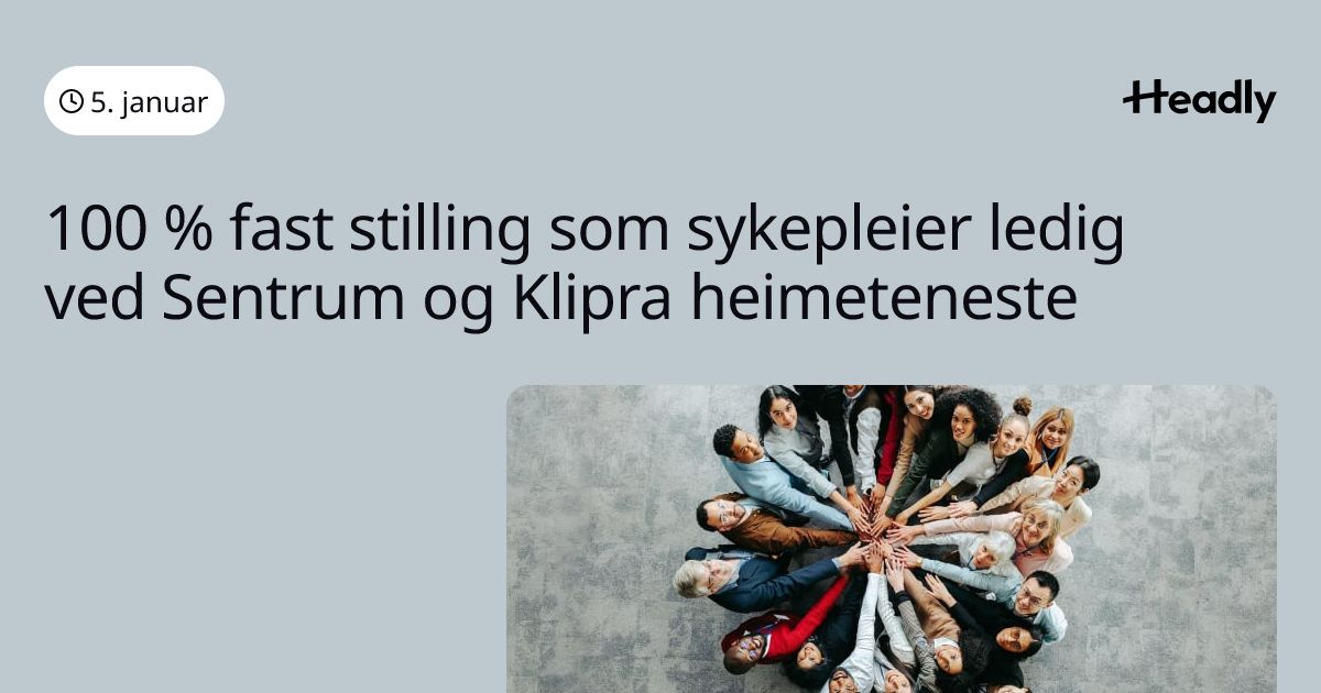 100 % fast stilling som sykepleier ledig ved Sentrum og Klipra heimeteneste
