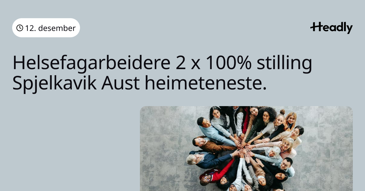 Helsefagarbeidere 2 x 100% stilling Spjelkavik Aust heimeteneste.