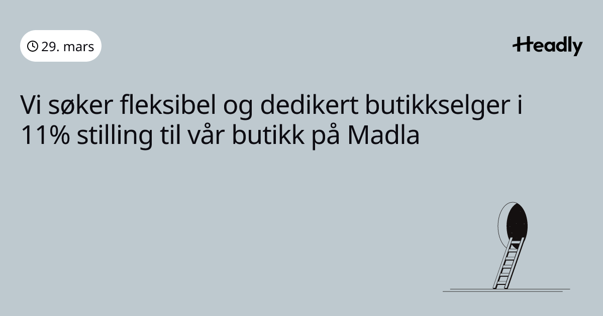 Vi søker fleksibel og dedikert butikkselger i 11% stilling til vår butikk på Madla