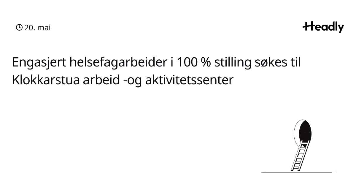 Engasjert helsefagarbeider i 100 % stilling søkes til Klokkarstua arbeid -og aktivitetssenter