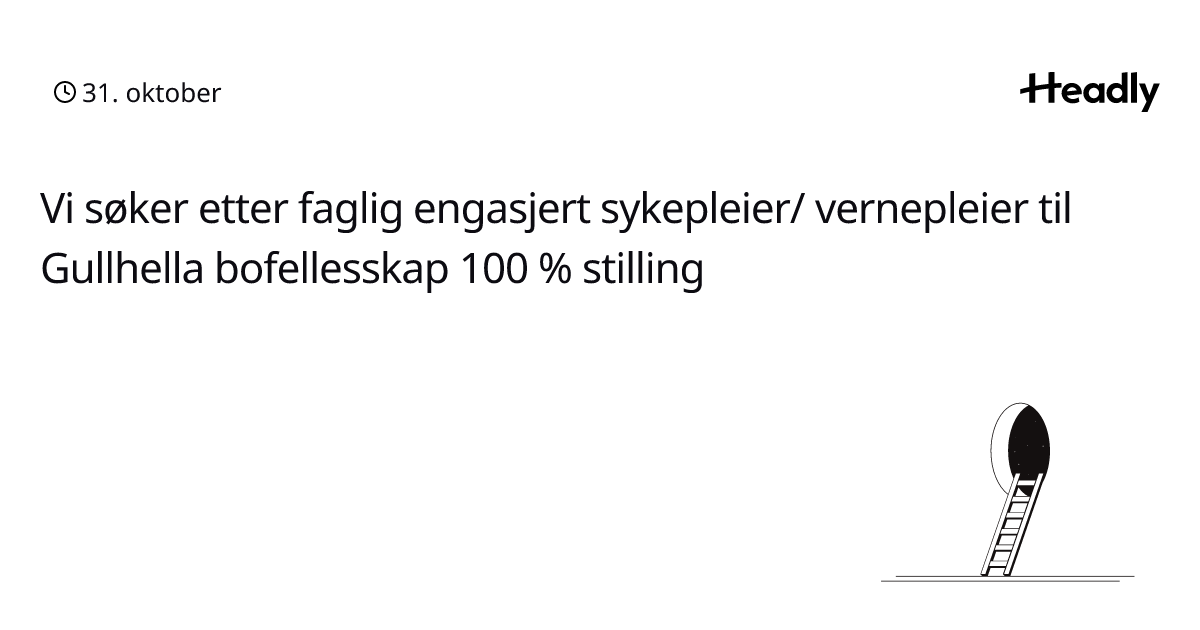 Vi søker etter faglig engasjert sykepleier/ vernepleier til Gullhella bofellesskap 100 % stilling