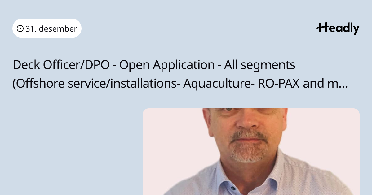 Deck Officer/DPO - Open Application - All segments (Offshore service/installations- Aquaculture- RO-PAX and more)