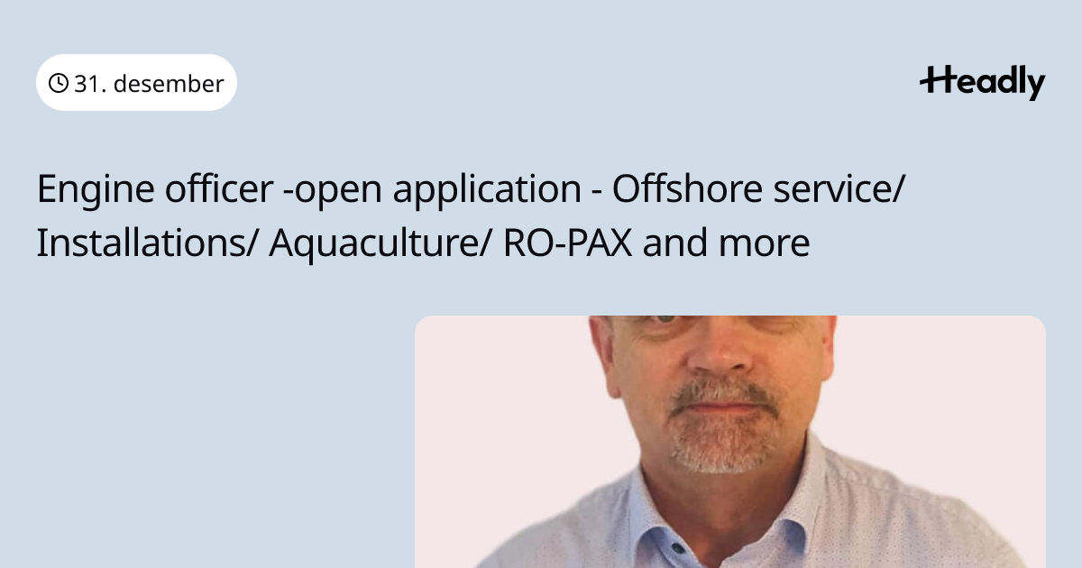 Engine officer -open application - Offshore service/ Installations/ Aquaculture/ RO-PAX and more