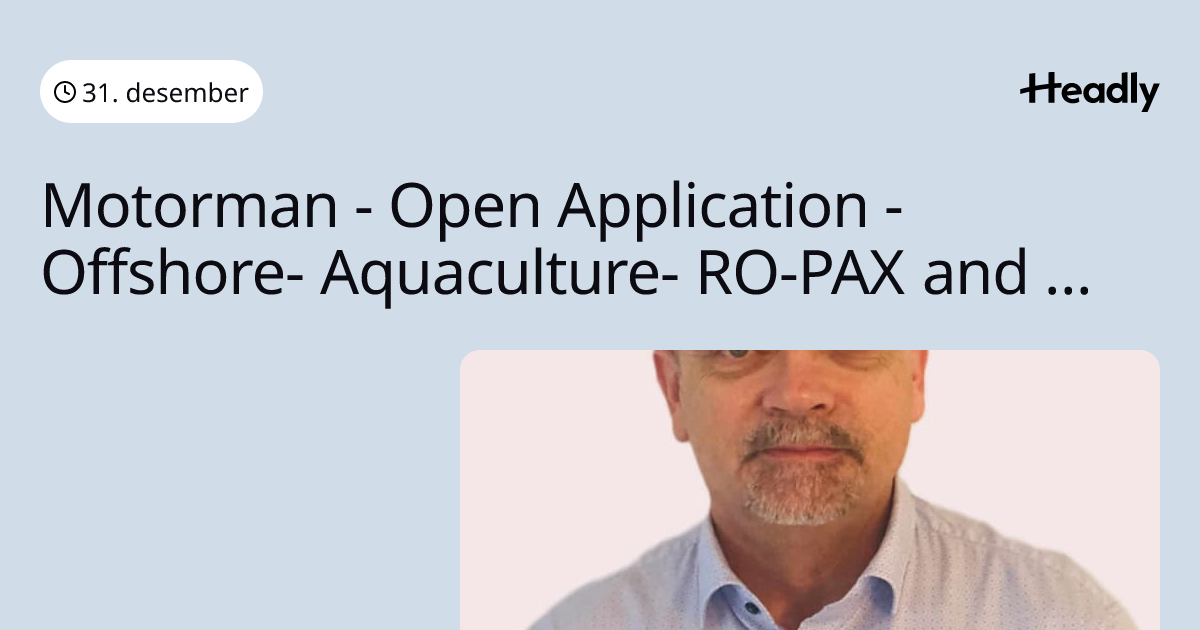Motorman - Open Application - Offshore- Aquaculture- RO-PAX and more