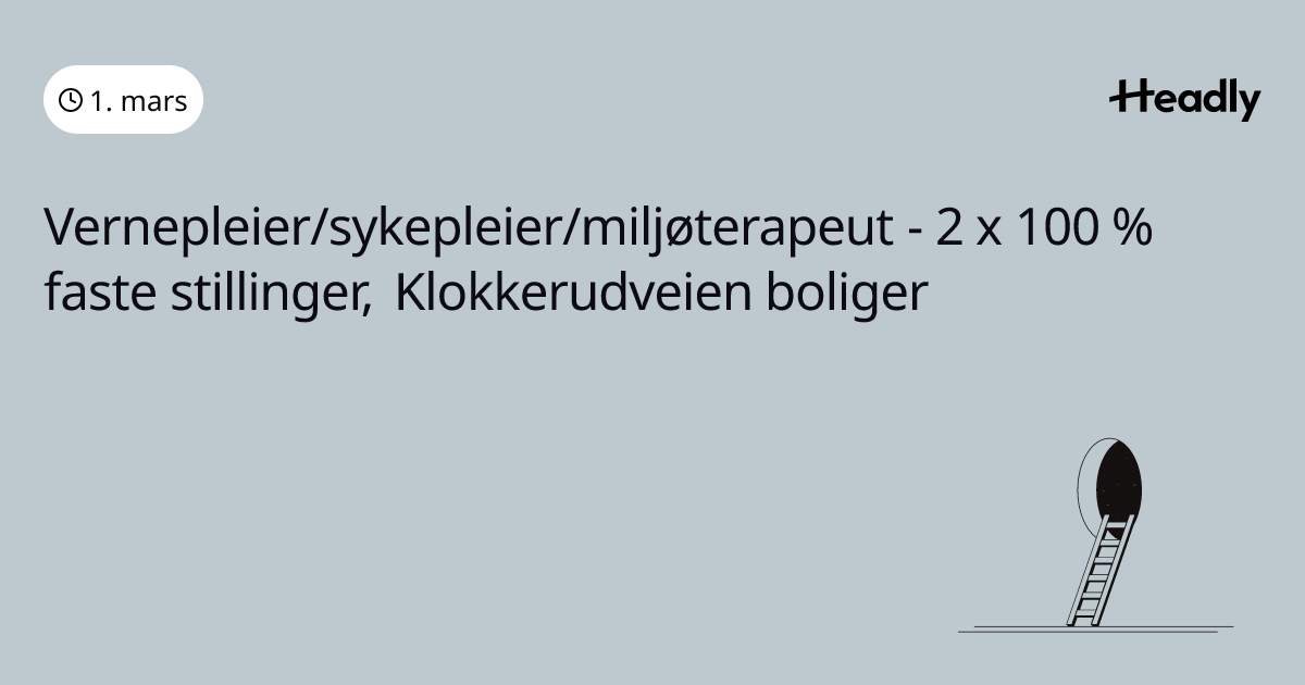 Vernepleier/sykepleier/miljøterapeut - 2 x 100 % faste stillinger, Klokkerudveien boliger