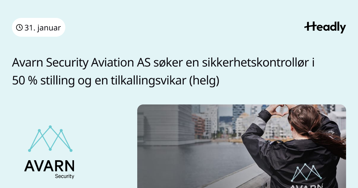 Avarn Security Aviation AS søker en sikkerhetskontrollør i 50 % stilling og en tilkallingsvikar (helg)