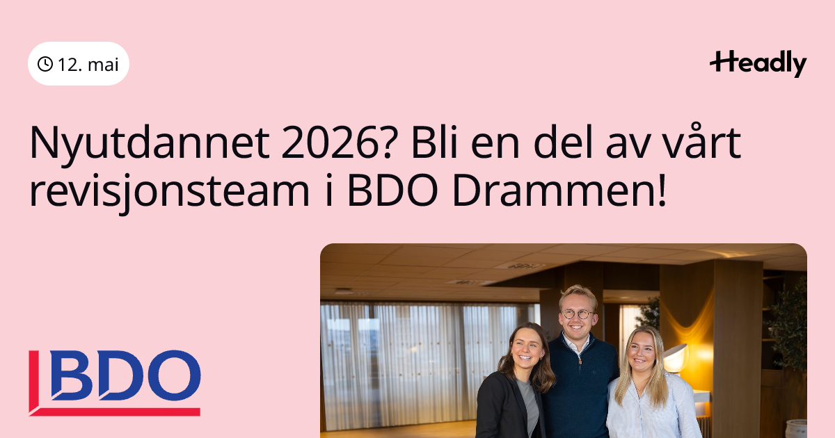 Nyutdannet 2026? Bli en del av vårt revisjonsteam i BDO Drammen!