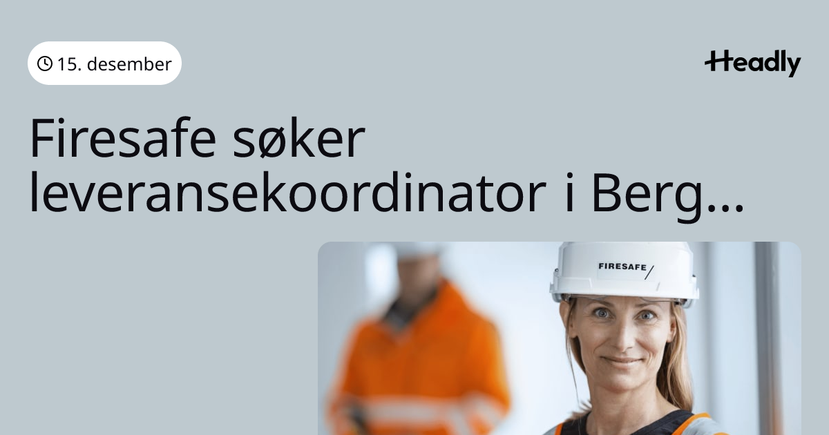 Firesafe søker leveransekoordinator i Bergen!