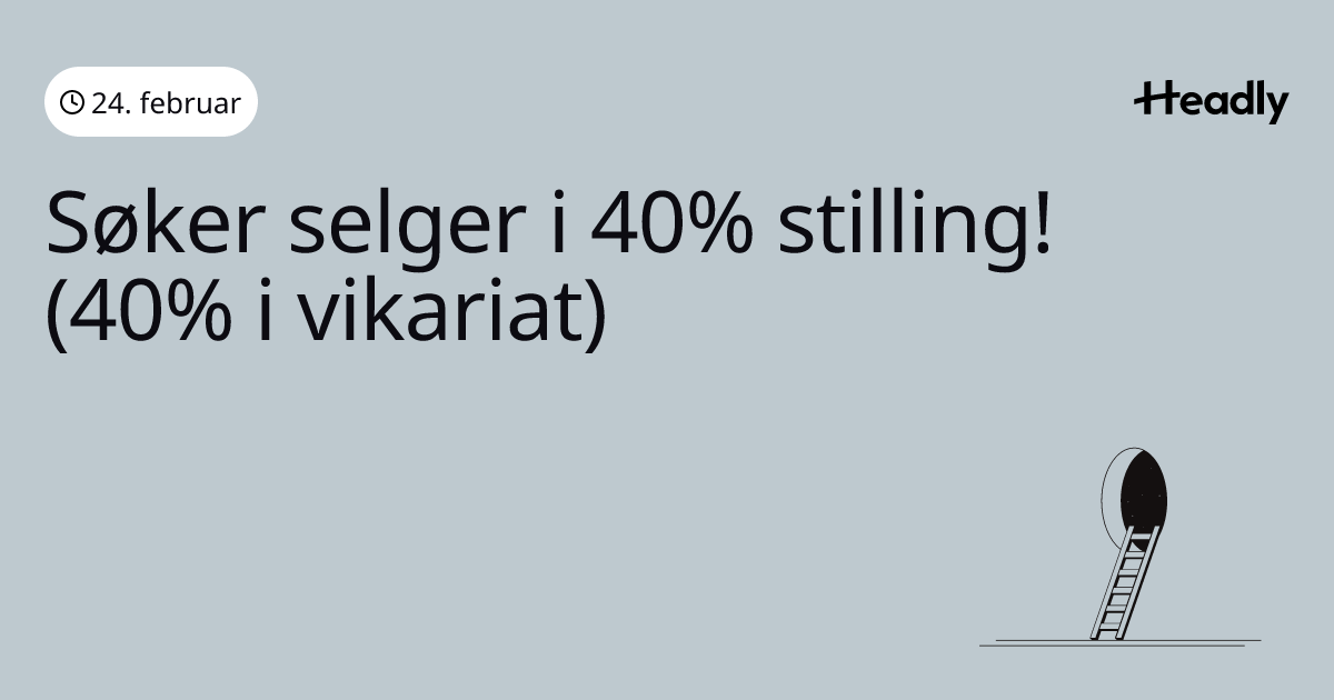 Søker selger i 40% stilling! (40% i vikariat)