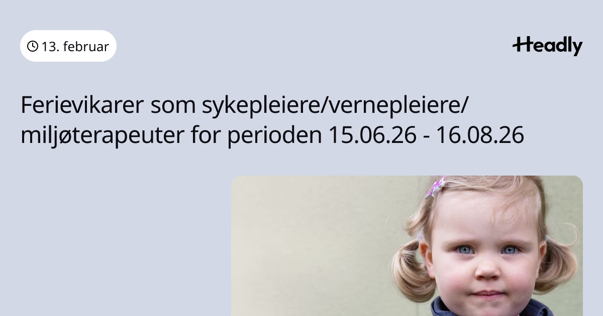 Ferievikarer som sykepleiere/vernepleiere/miljøterapeuter for perioden 15.06.26 - 16.08.26