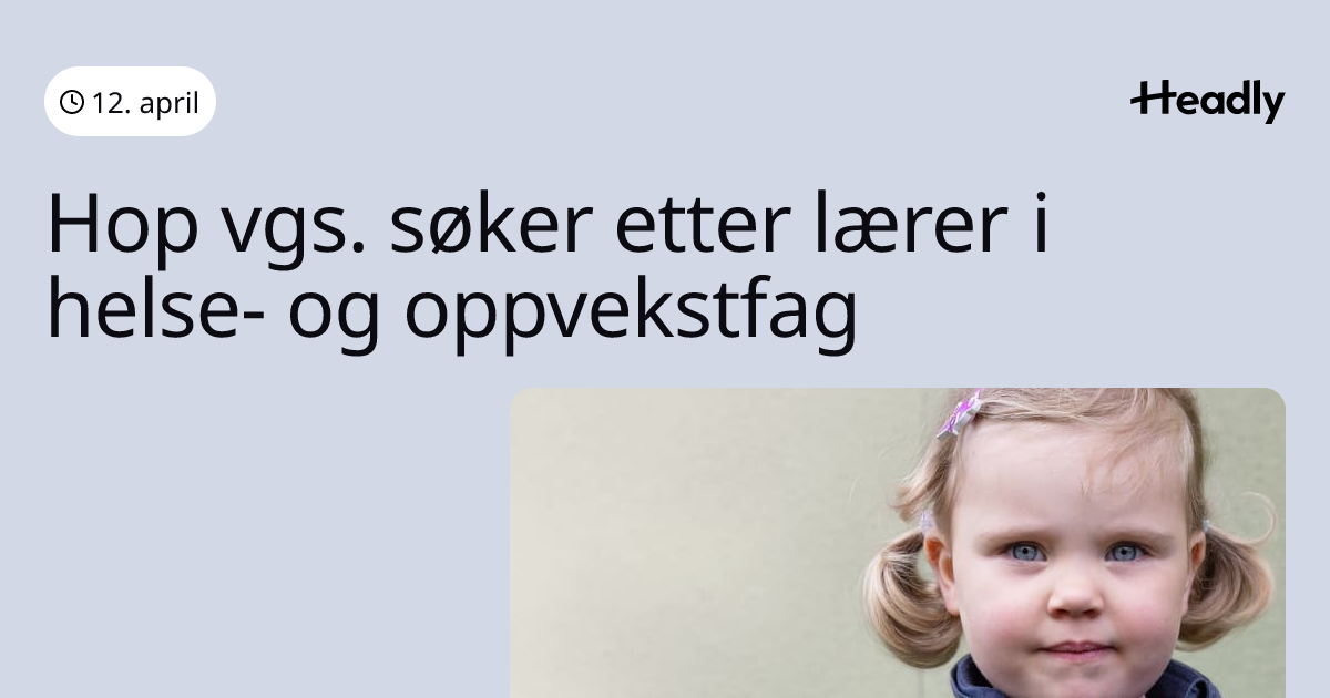 Hop vgs. søker etter lærer i helse- og oppvekstfag