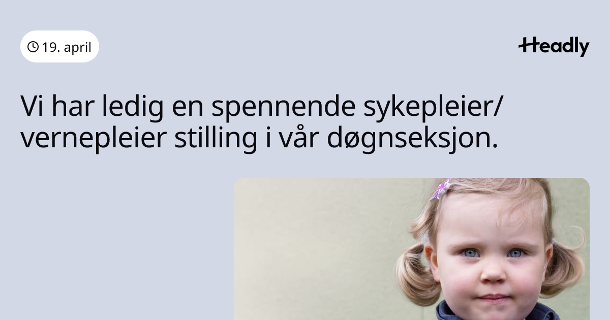 Vi har ledig en spennende sykepleier/vernepleier stilling i vår døgnseksjon.