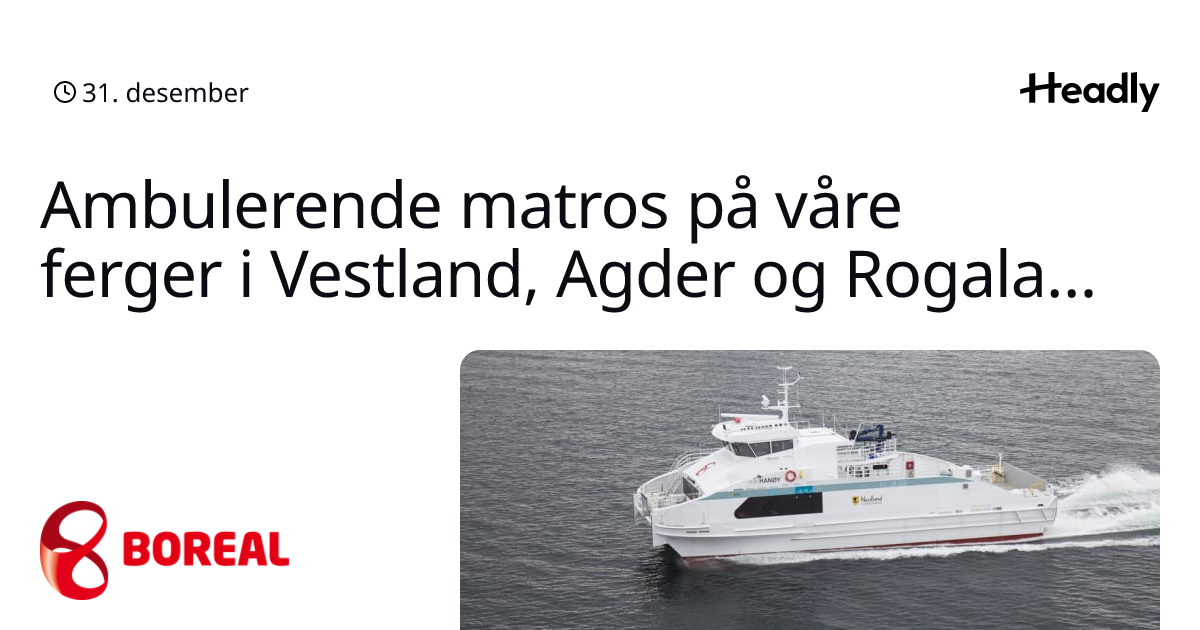 Ambulerende matros på våre ferger i Vestland, Agder og Rogaland