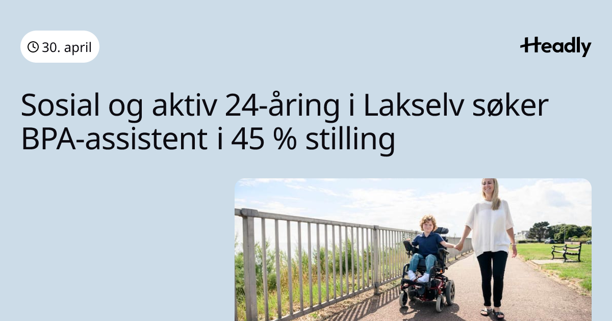 Sosial og aktiv 24-åring i Lakselv søker BPA-assistent i 45 % stilling