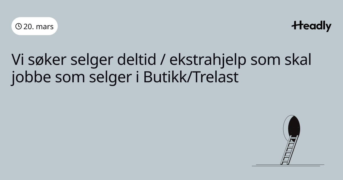 Vi søker selger deltid / ekstrahjelp som skal jobbe som selger i Butikk/Trelast