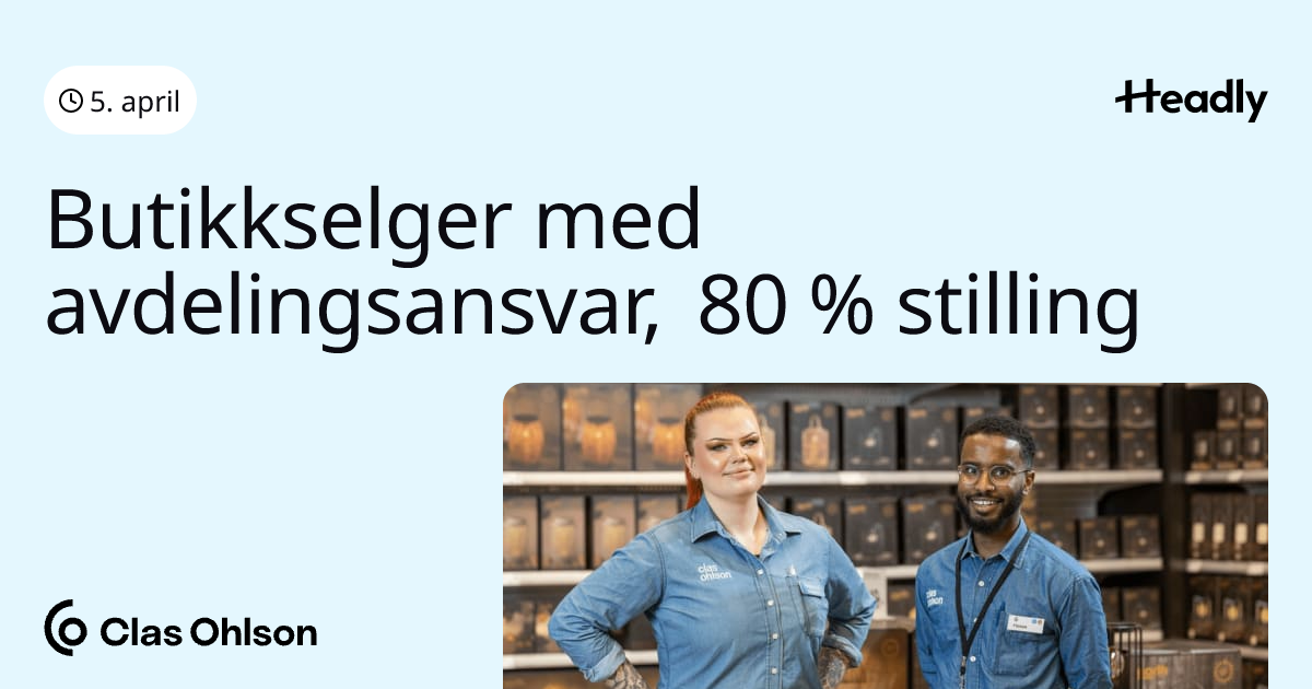 Butikkselger med avdelingsansvar, 80 % stilling
