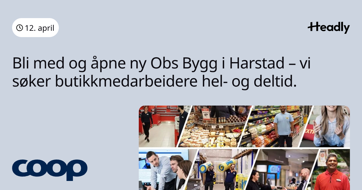 Bli med og åpne ny Obs Bygg i Harstad – vi søker butikkmedarbeidere hel- og deltid.
