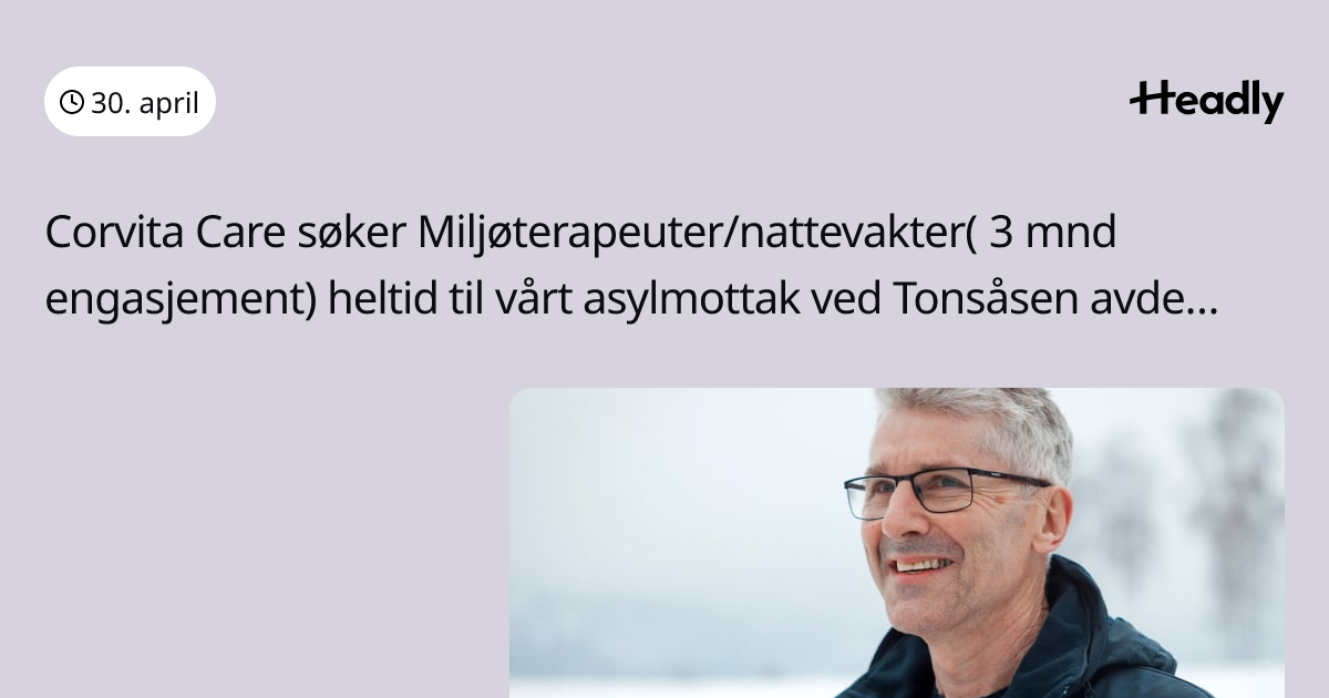 Corvita Care søker Miljøterapeuter/nattevakter( 3 mnd engasjement) heltid til vårt asylmottak ved Tonsåsen avdeling TA!