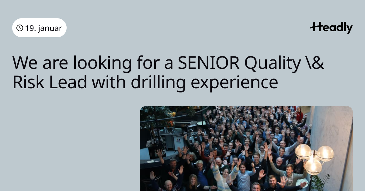 We are looking for a SENIOR Quality \& Risk Lead with drilling experience