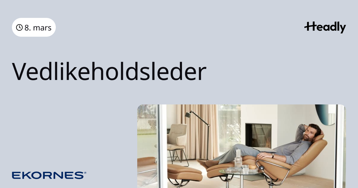 Mennesker. Mestring. Momentum. Sammen setter vi standarden for verdensklasse! Ekornes søker Vedlikeholdsleder.