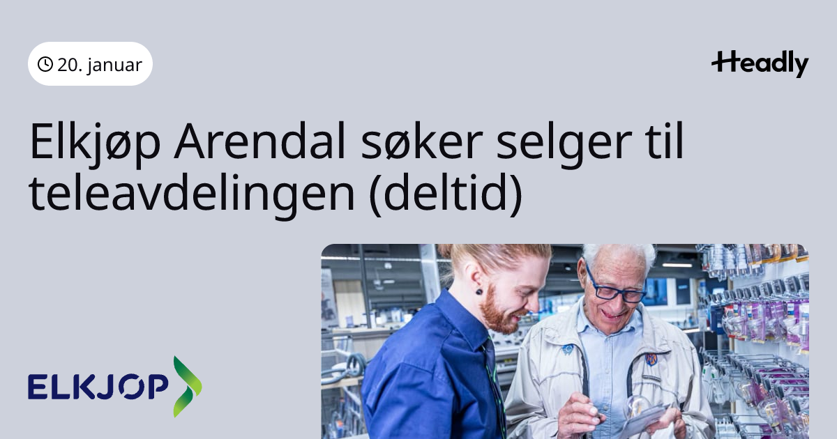 Elkjøp Arendal søker selger til teleavdelingen (deltid)