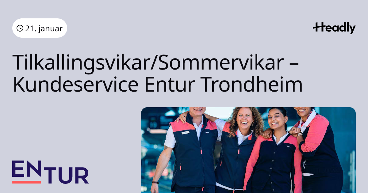 Tilkallingsvikar/Sommervikar – Kundeservice Entur Trondheim