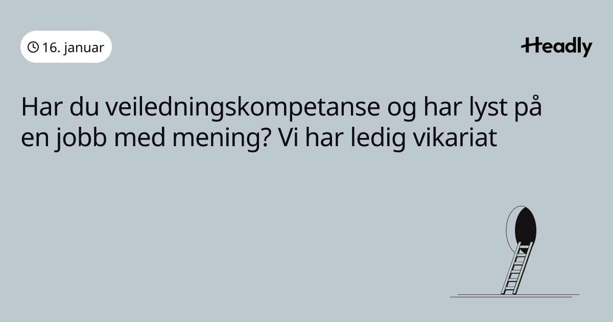 Har du veiledningskompetanse og har lyst på en jobb med mening? Vi har ledig vikariat