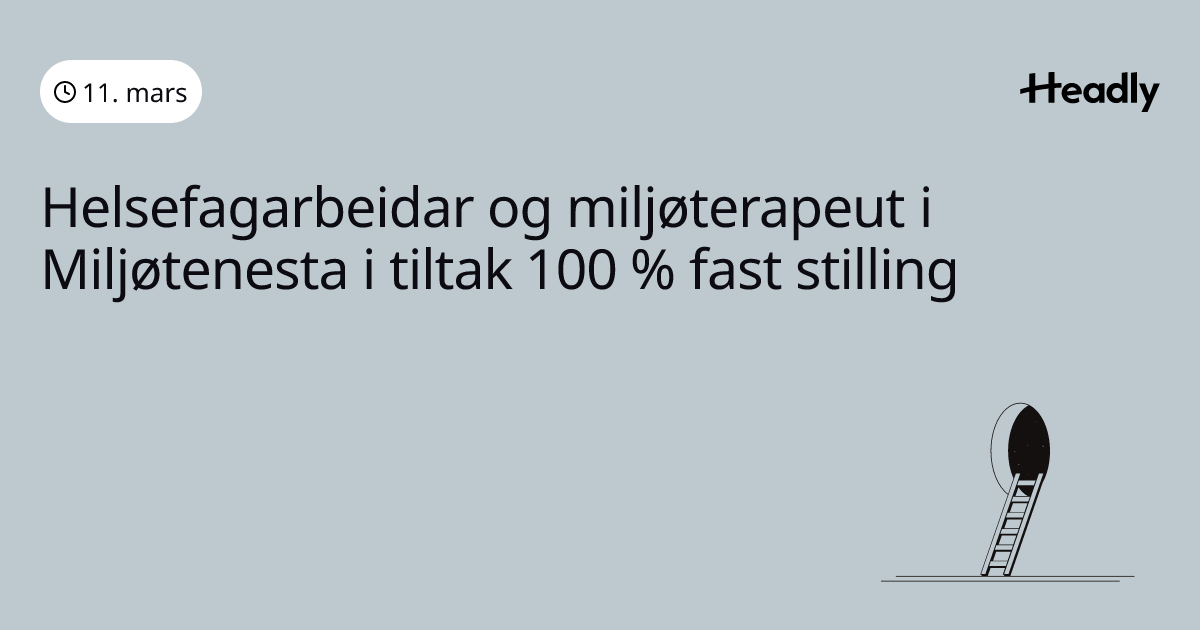 Helsefagarbeidar og miljøterapeut i Miljøtenesta i tiltak 100 % fast stilling