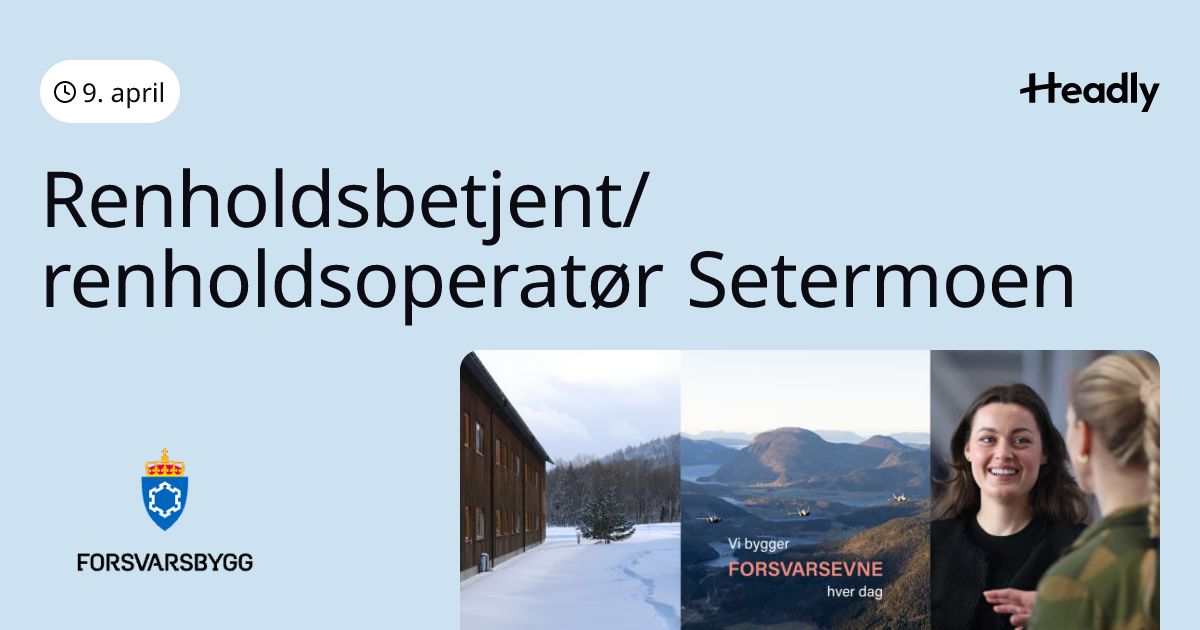 Vi søker etter to renholdere til fulltidsstillinger på Setermoen leir!