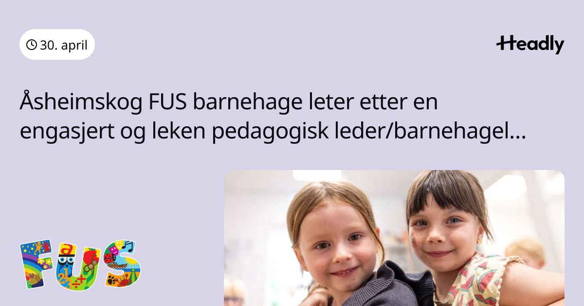 Åsheimskog FUS barnehage leter etter en engasjert og leken pedagogisk leder/barnehagelærer2