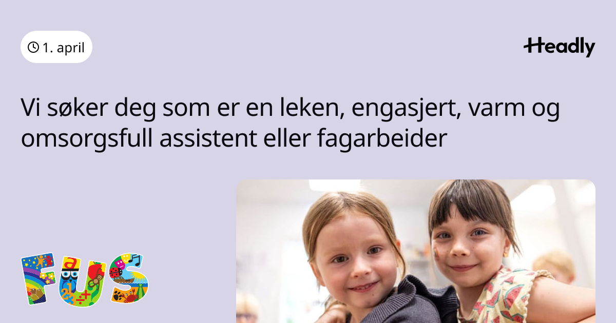 Vi søker deg som er en leken, engasjert, varm og omsorgsfull assistent eller fagarbeider