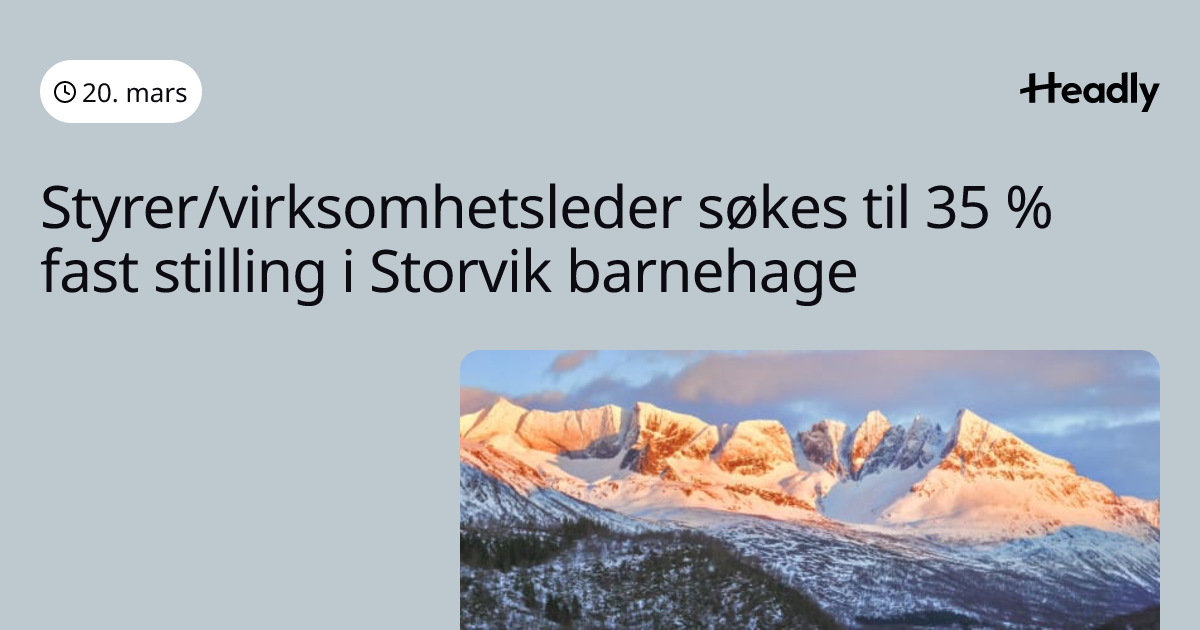 Styrer/virksomhetsleder søkes til 35 % fast stilling i Storvik barnehage