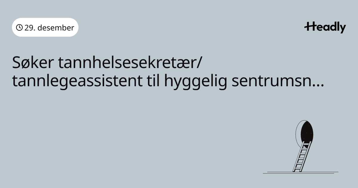Søker tannhelsesekretær/tannlegeassistent til hyggelig sentrumsnær tannklinikk