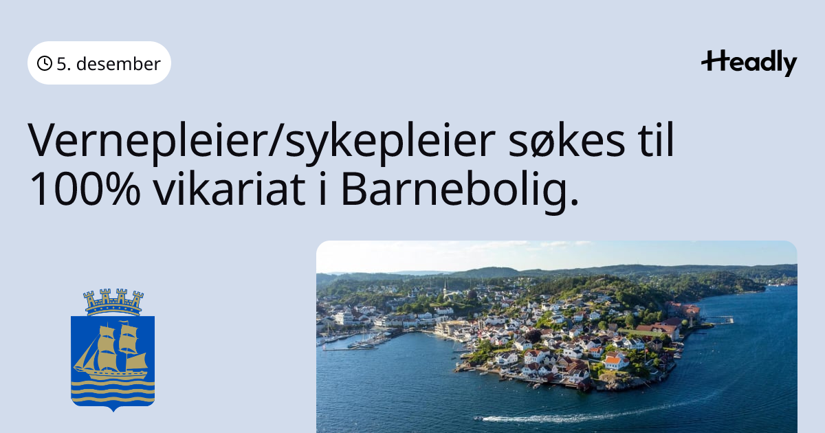Vernepleier/sykepleier søkes til 100% vikariat i Barnebolig.