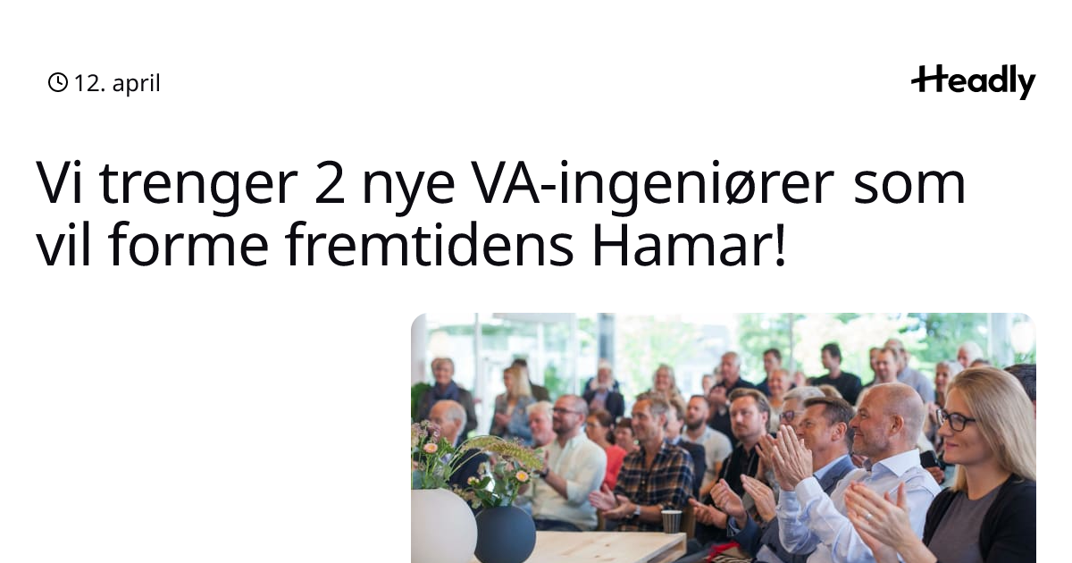 Vi trenger 2 nye VA-ingeniører som vil forme fremtidens Hamar!