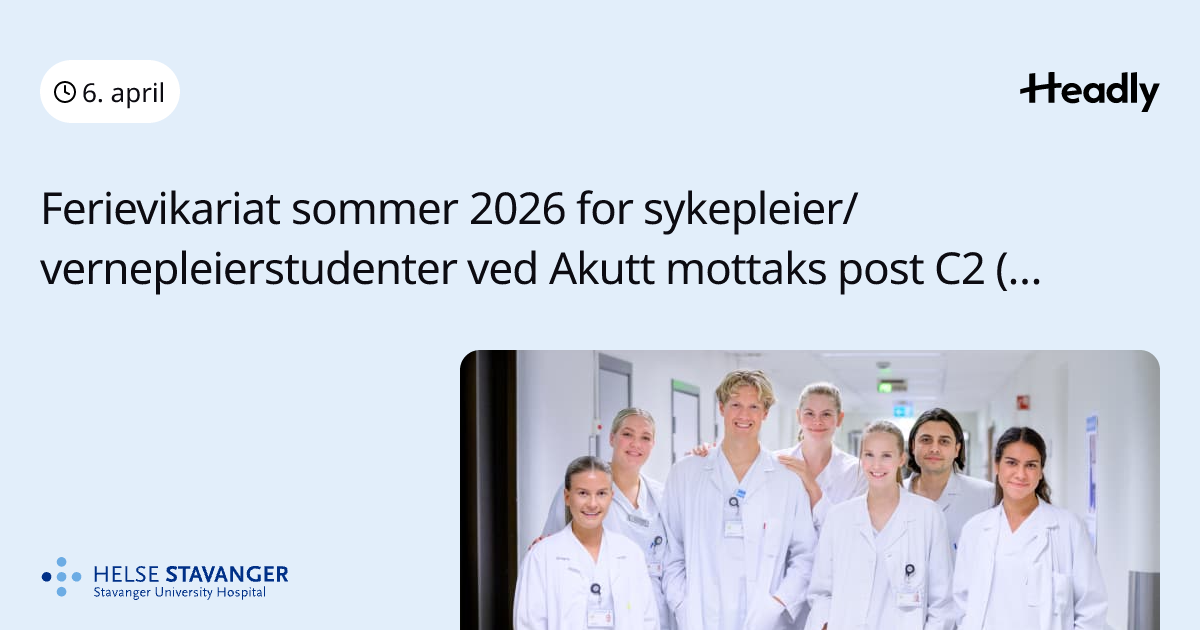 Ferievikariat sommer 2026 for Sykepleier/vernepleierstudenter ved Akutt Mottakspost C2