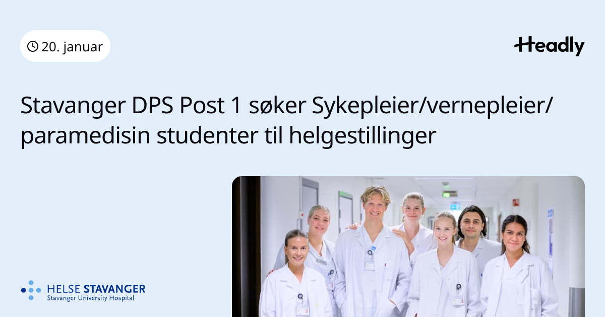 Stavanger DPS Post 1 søker Sykepleier/vernepleier/paramedisin studenter til helgestillinger