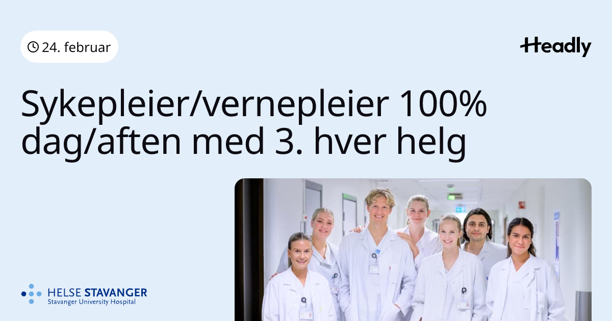 Sykepleier/vernepleier 100% dag/aften med 3. hver helg
