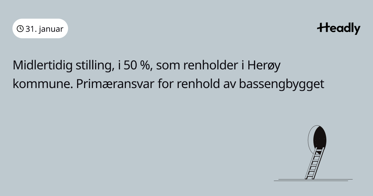 Midlertidig stilling, i 50 %, som renholder i Herøy kommune. Primæransvar for renhold av bassengbygget