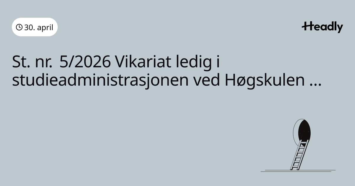 St. nr. 5/2026 Vikariat ledig i studieadministrasjonen ved Høgskulen i Volda
