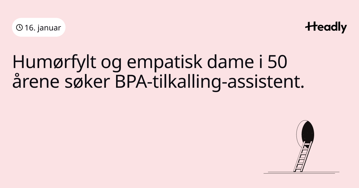 Humørfylt og empatisk dame i 50 årene søker BPA-tilkalling-assistent.