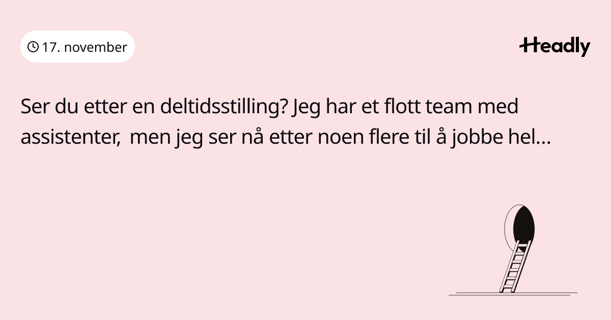 Ser du etter en deltidsstilling? Jeg har et flott team med assistenter, men jeg ser nå etter noen flere til å jobbe helg, gjerne studenter!
