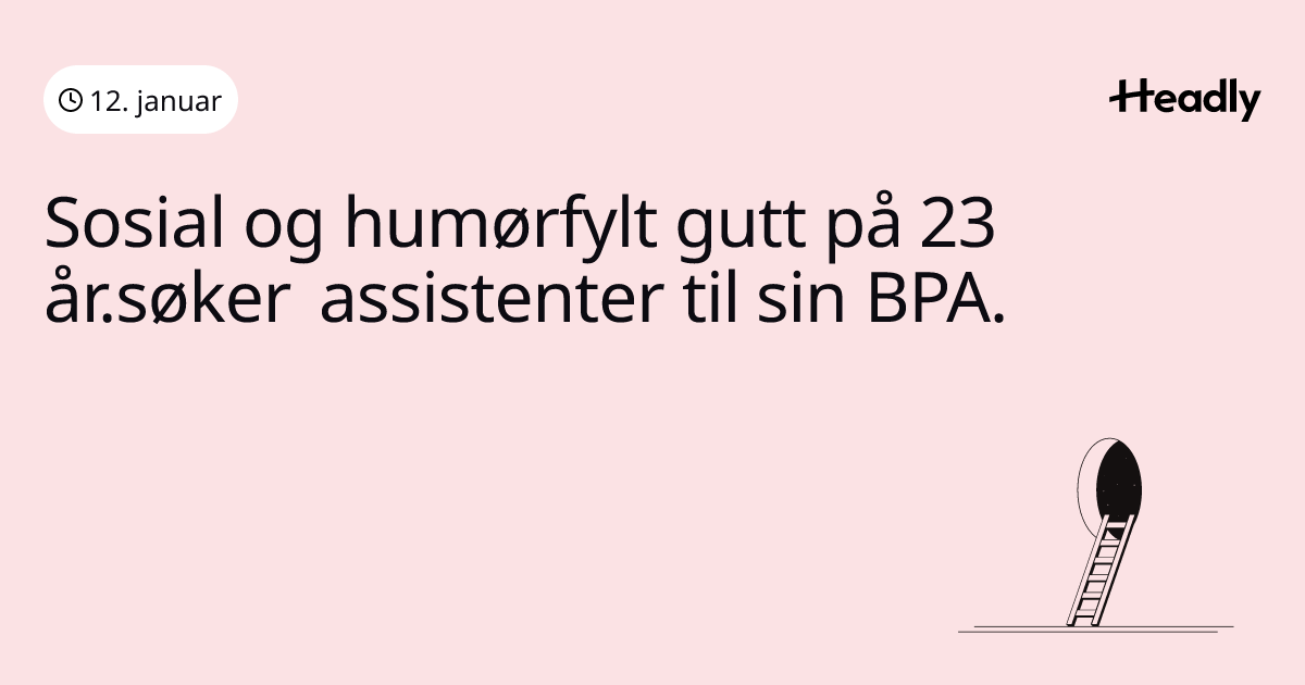 Sosial og humørfylt gutt på 23 år.søker assistenter til sin BPA.