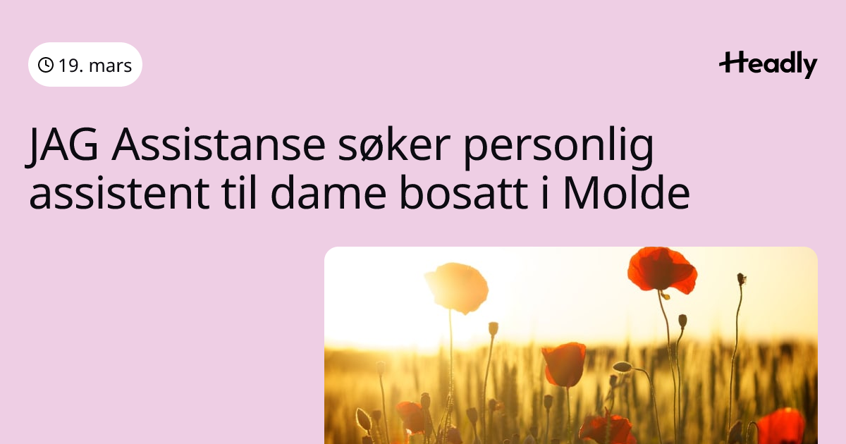 JAG Assistanse søker personlig assistent til dame bosatt i Molde