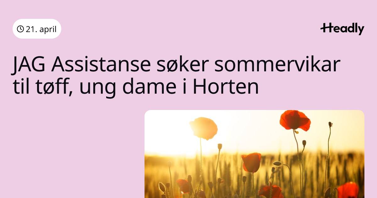 JAG Assistanse søker sommervikar til tøff, ung dame i Horten