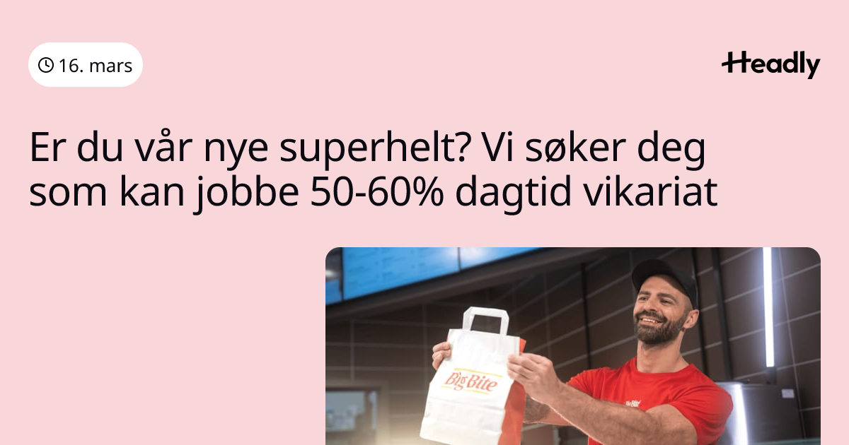 Er du vår nye superhelt? Vi søker deg som kan jobbe 50-60% dagtid vikariat