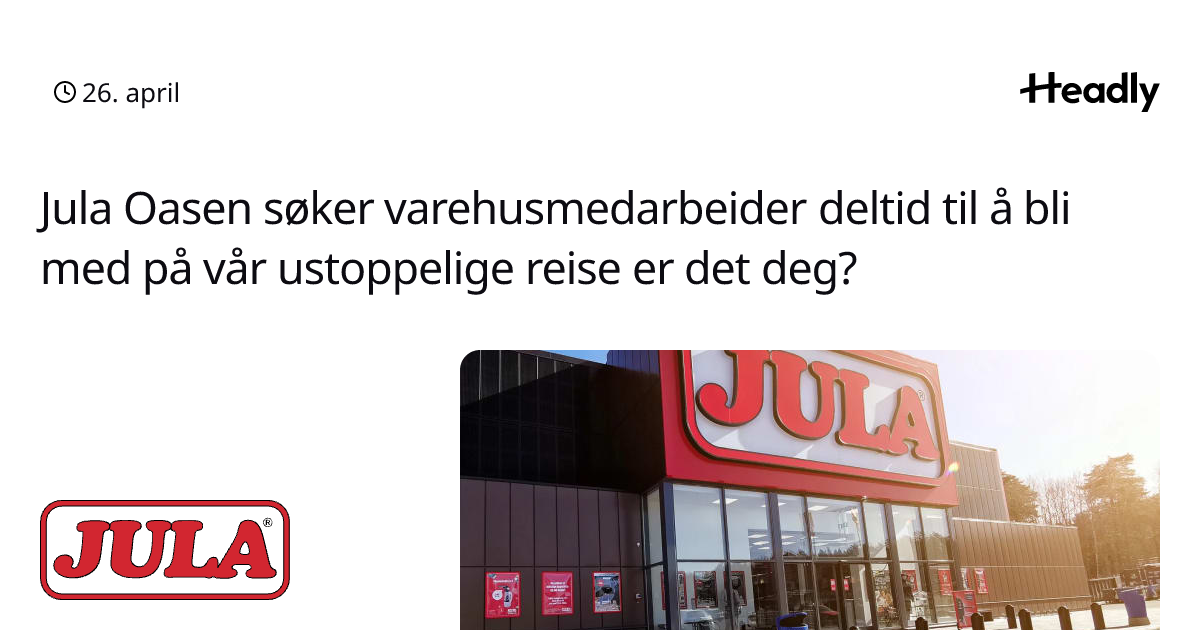 Jula Oasen søker varehusmedarbeider deltid til å bli med på vår ustoppelige reise er det deg?