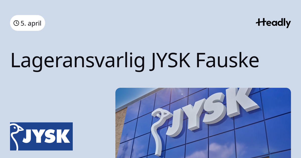 Vil du ha ansvar for hjertet i en JYSK-butikk? Vi søker nå en engasjert og strukturert lageransvarlig som liker å hol...