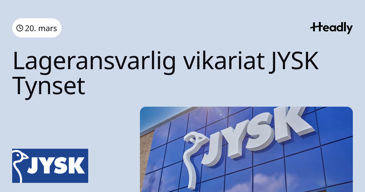 JYSK søker en erfaren og detaljorientert lagerleder til en midlertidig stilling ved vårt anlegg i Tynset, Norge. I de...