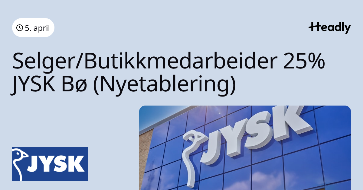Selger/Butikkmedarbeider 25% JYSK Bø (Nyetablering)
